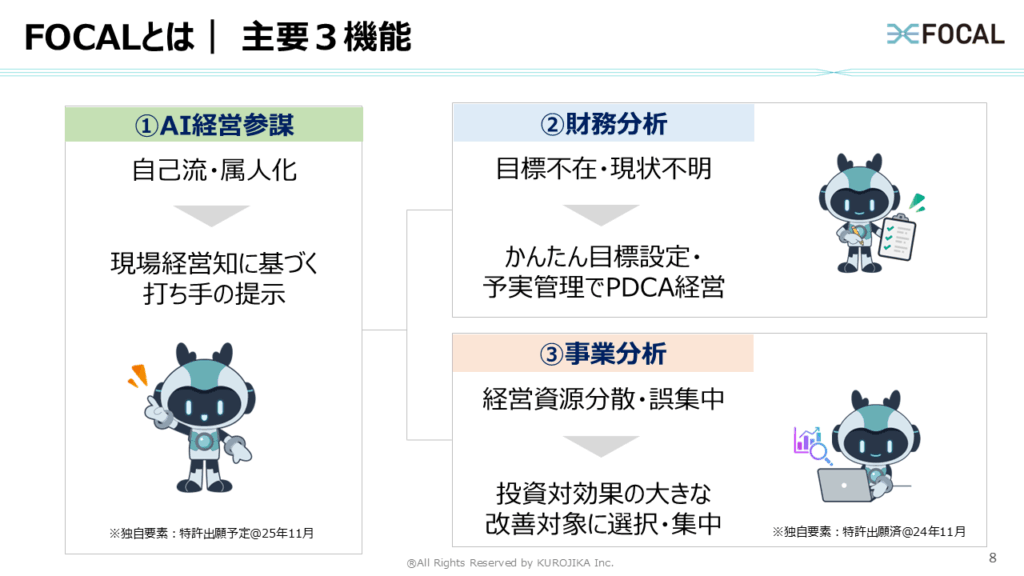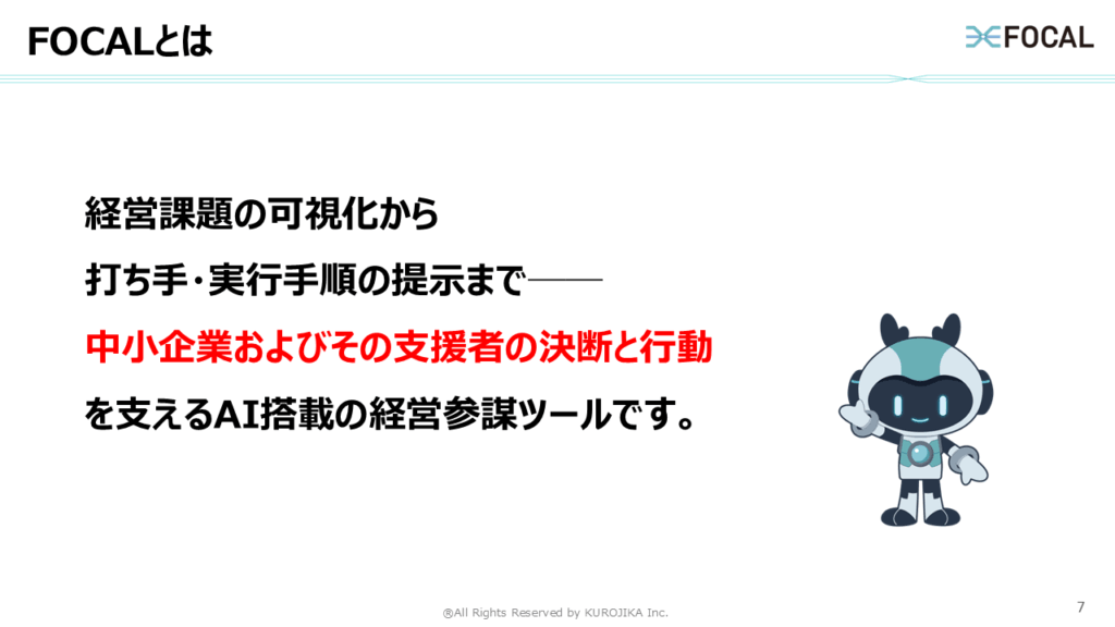株式会社KUROJIKA(代表取締役:早川伸夫)が提供するAI経営参謀SaaS『FOCAL(フォーカル)』が、