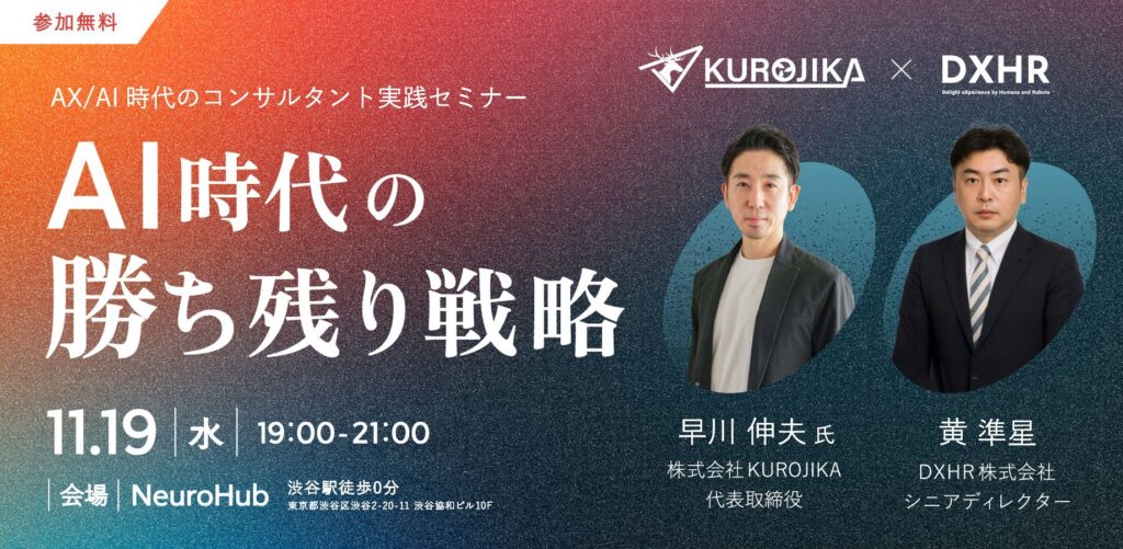 株式会社KUROJIKA(代表取締役 早川伸夫)は、DXHR株式会社(シニアディレクター 黄準星氏)との共催により、